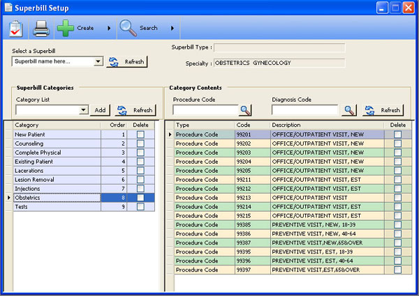 superbill, and for each category, add the appropriate Procedure and Diagnostic codes.